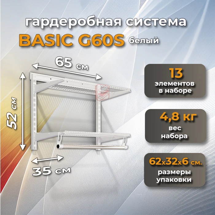 Гардеробная система Basic G60S белая — это удобное и компактное решение для организации пространства в вашем доме. Система идеально подходит для хранения одежды, обуви и аксессуаров.
