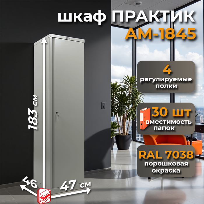 Шкаф офисный металлический ПРАКТИК АМ 1845 — универсальное решение для хранения больших объемов документации, служебной и деловой информации.