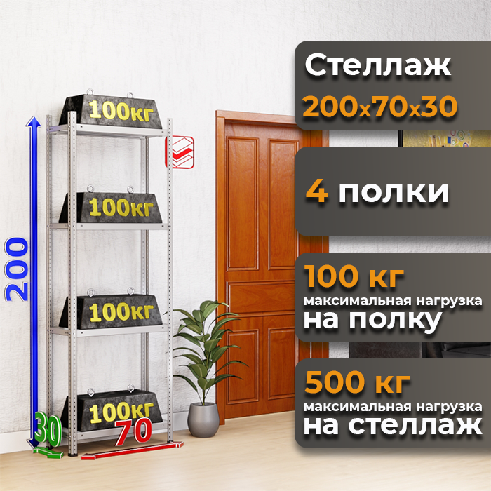 Стеллаж для дома 200х70х30 с 4 полками MS Standart: компактное решение для хранения