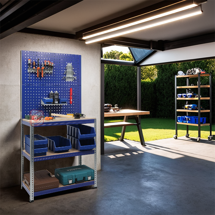 Верстак поставляется в одной коробке (размер упаковки: 1140x560x140 мм, вес 31 кг), что упрощает транспортировку и сборку. Благодаря возможности установки дополнительных элементов его можно адаптировать под любые задачи.