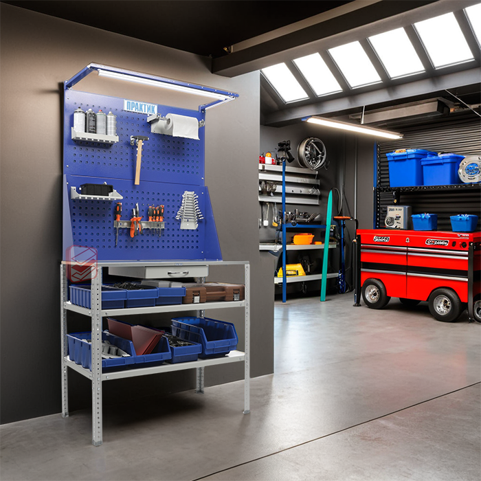 Верстак Garage Set 1 – это компактный и функциональный рабочий стол для гаража, мастерской или любого другого рабочего пространства. Он сочетает в себе надежность, удобство и высокую нагрузочную способность, что делает его универсальным решением для хранения и организации инструментов.